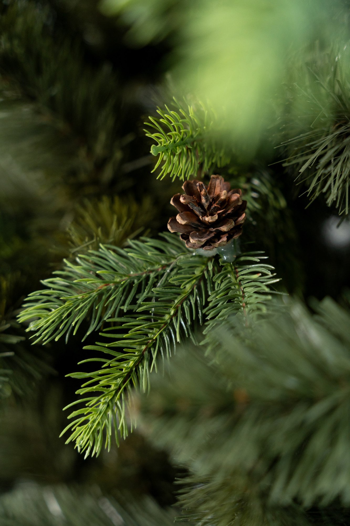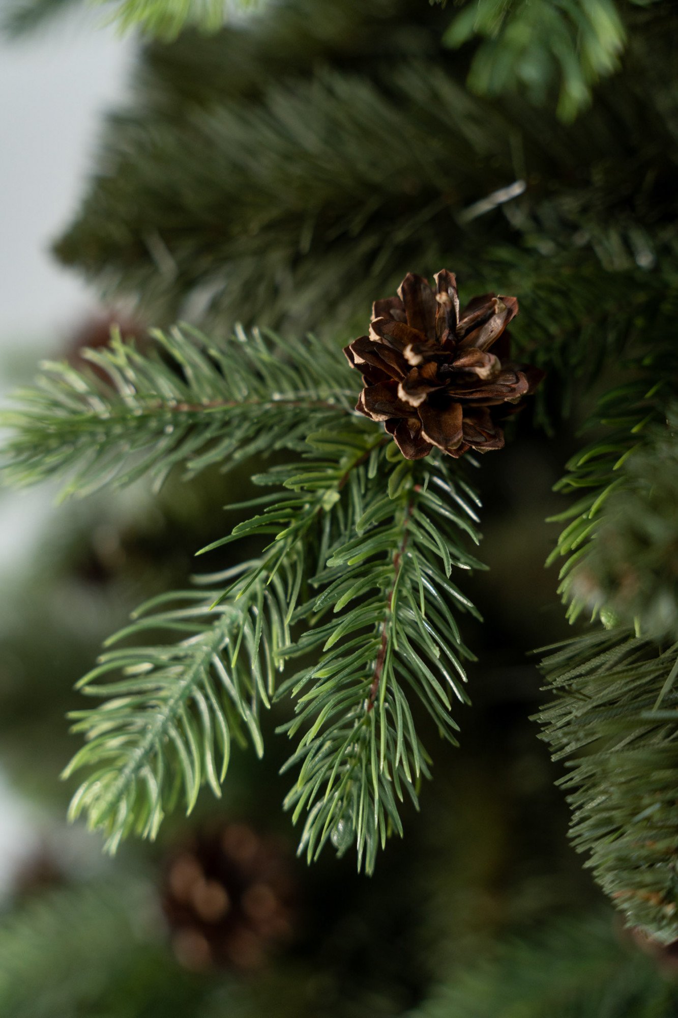 średniego brązu. Sosna Infinity posiada gałązki o różnym cięciu. Część z nich (gałązki klasyczne, foliowe) ścięta jest w szpic (długość samego szpica około 5 cm) natomiast pozostałe, stanowiące w głównej mierze wypełnienie choinki są zakończone tradycyjnie (bez ścięcia) Dodatkowo sosna Infinity posiada gałązki PE (gałązki dwukolorowe ciemniejsze w środku, jaśniejsze na końcach) do których dołączona jest naturalna szyszka. Dzięki takiemu dodatkowi choinka nabiera bardzo naturalnego charakteru.