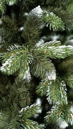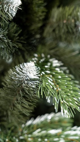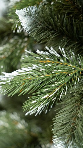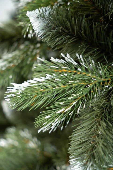 Propozycja z gatunku choinek PE. Sosna Royal jest to choinka zbudowana zarówno z gałązek klasycznych (folia pcv) jak i gałązek PE (polietylen). Gałązki klasyczne wykonane są z folii w średnim odcieniu zieleni przeplecione przy rdzeniu krótkimi igłami (około 5 mm) w kolorze średniego brązu. Sosna Royal posiada gałązki o różnym cięciu. Część z nich (gałązki klasyczne, foliowe) ścięta jest w szpic, (długość samego szpica około 5 cm) pomalowane są one na końcach białą farbą, natomiast pozostałe, stanowiące jej wypełnienie maja klasyczne cięcie. Sosna Royal posiada również gałązki PE, szerokie i rozłożyste o długiej igle (gałązki są w odcieniu średniej zieleni), delikatnie przyozdobione są one perłowym brokatem.