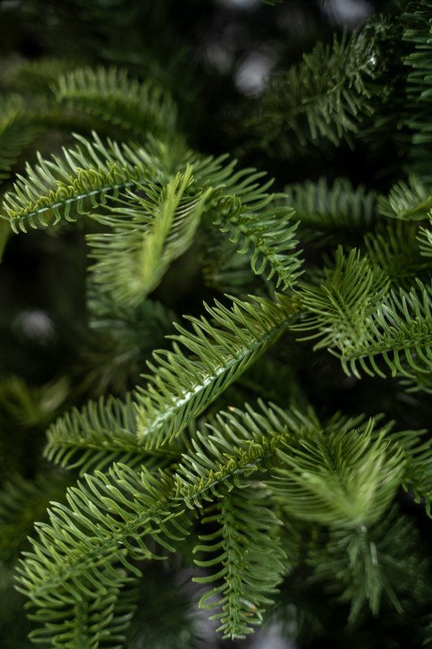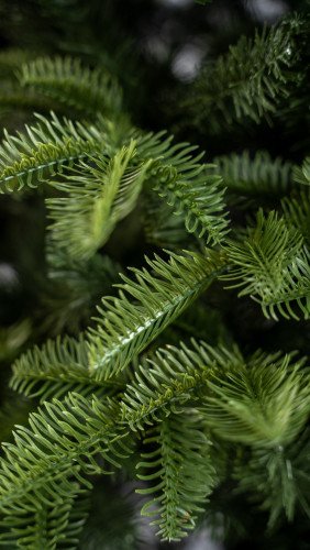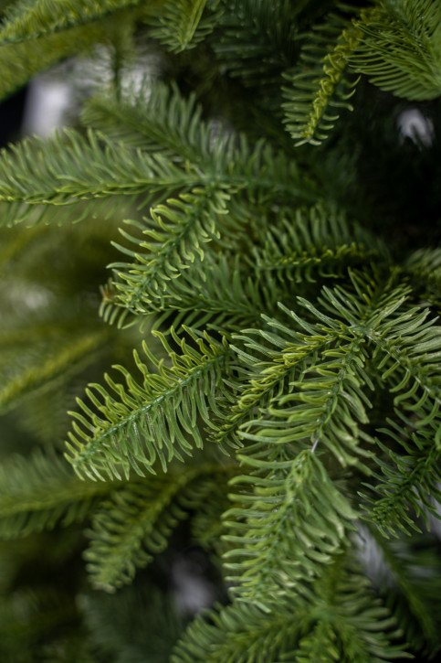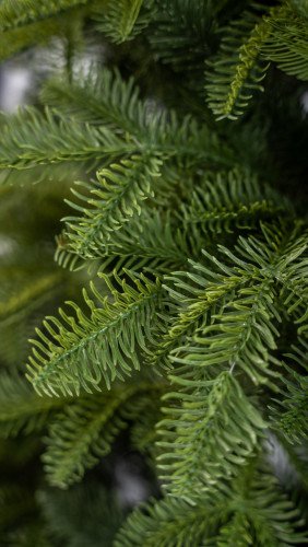 Alpejska jest choinką zbudowaną w 100 % z gałązek PE (polietylen) Są one w kolorze jasnej zieleni. Jedynie krótsza część gałęzi w głębi choinki (oraz jej pień) owinięta jest folią pcv (w kolorze odpowiadającym gałązkom) Gałązki są szyte nićmi dlatego w dużym stopniu wyeliminowany jest czynnik kłucia choinki. Choinka ta test niezwykle realistyczna, niemalże niczym nie odbiega od naturalnej, żywej choinki. Konstrukcja na zawiasach: to drzewko ma konstrukcję na zawiasach, więc gałęzie automatycznie ustawią się pod odpowiednim kątem. Ułatwia to rozstawienie choinki do idealnego kształtu i pozwala zaoszczędzić czas.